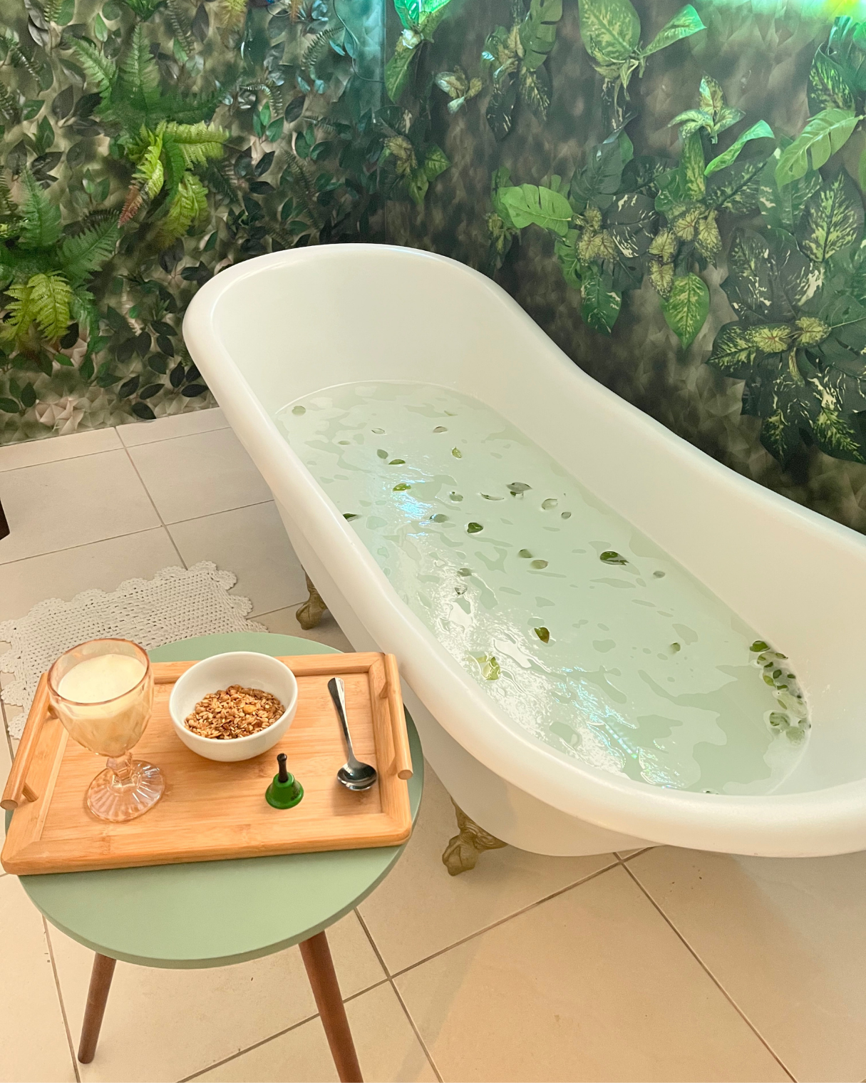 O banho de imersão ayurvédico utiliza ervas naturais, sal marinho e óleos medicinais para promover relaxamento físico e mental em um ambiente acolhedor.