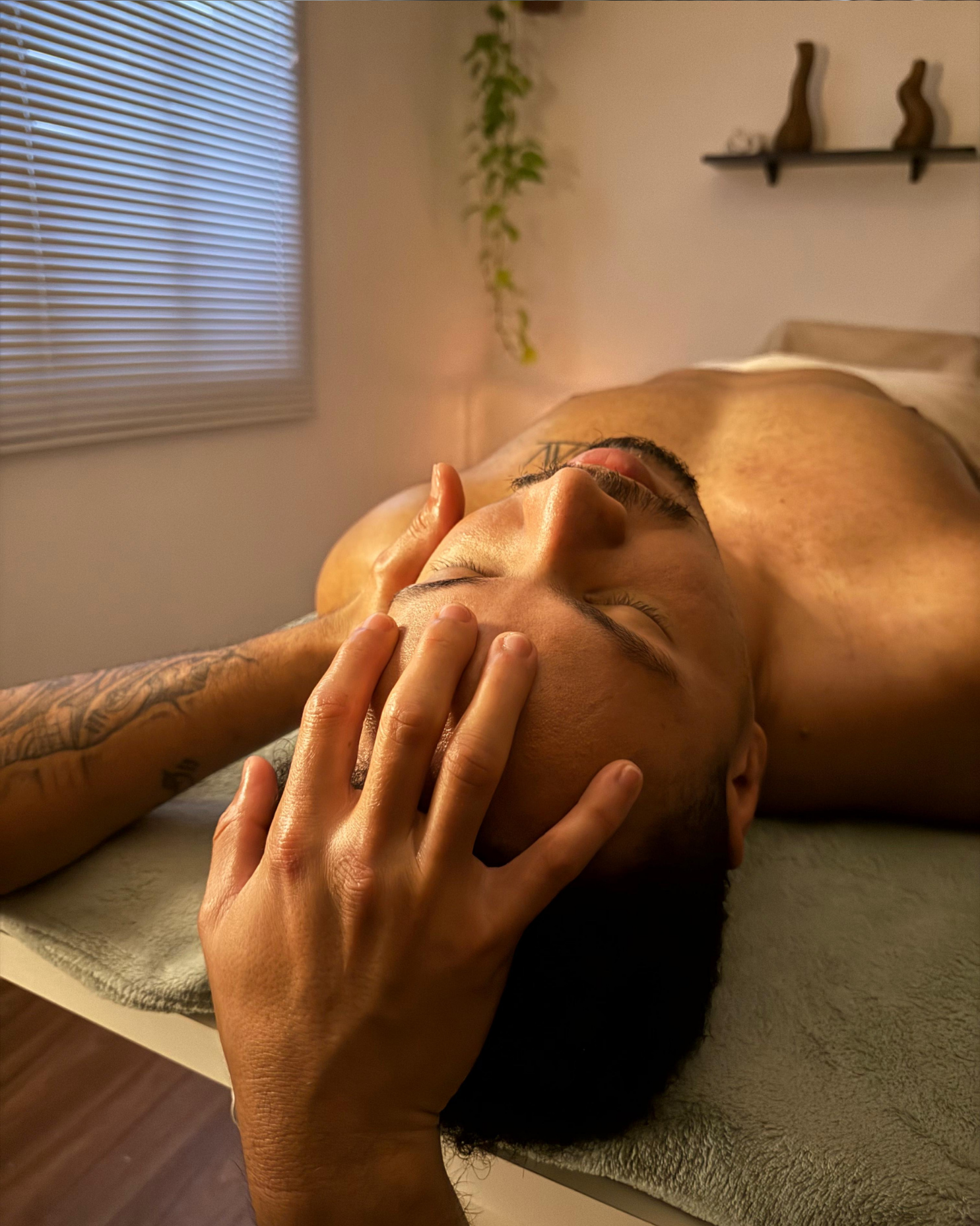 Durante a massagem, o corpo é trabalhado de forma global, da cabeça aos pés, estimulando a circulação, liberando tensões acumuladas, acalmando o sistema nervoso e promovendo uma sensação de corpo inteiro cuidado, nutrido e aterrado.