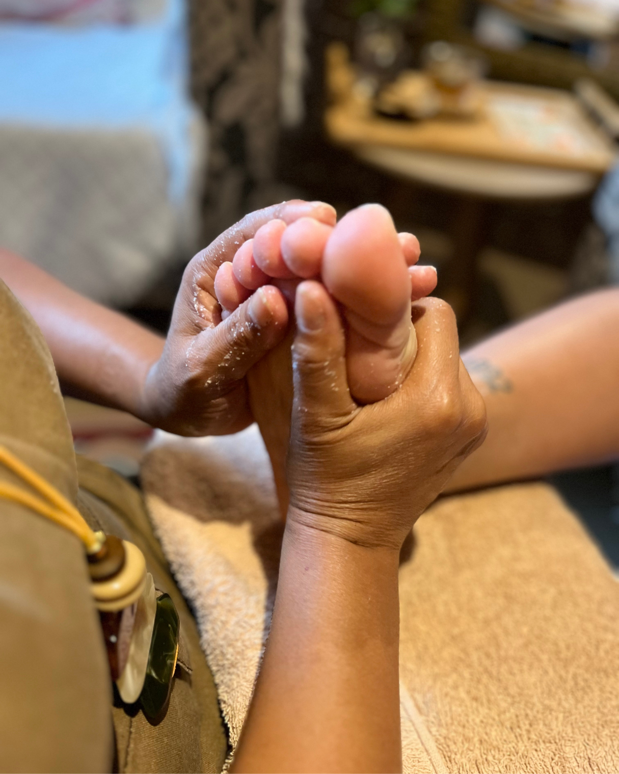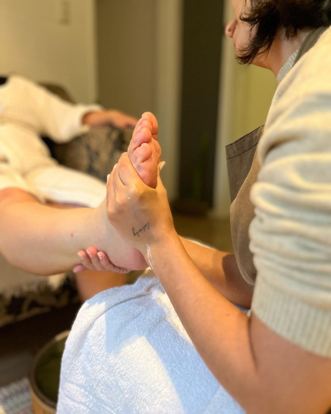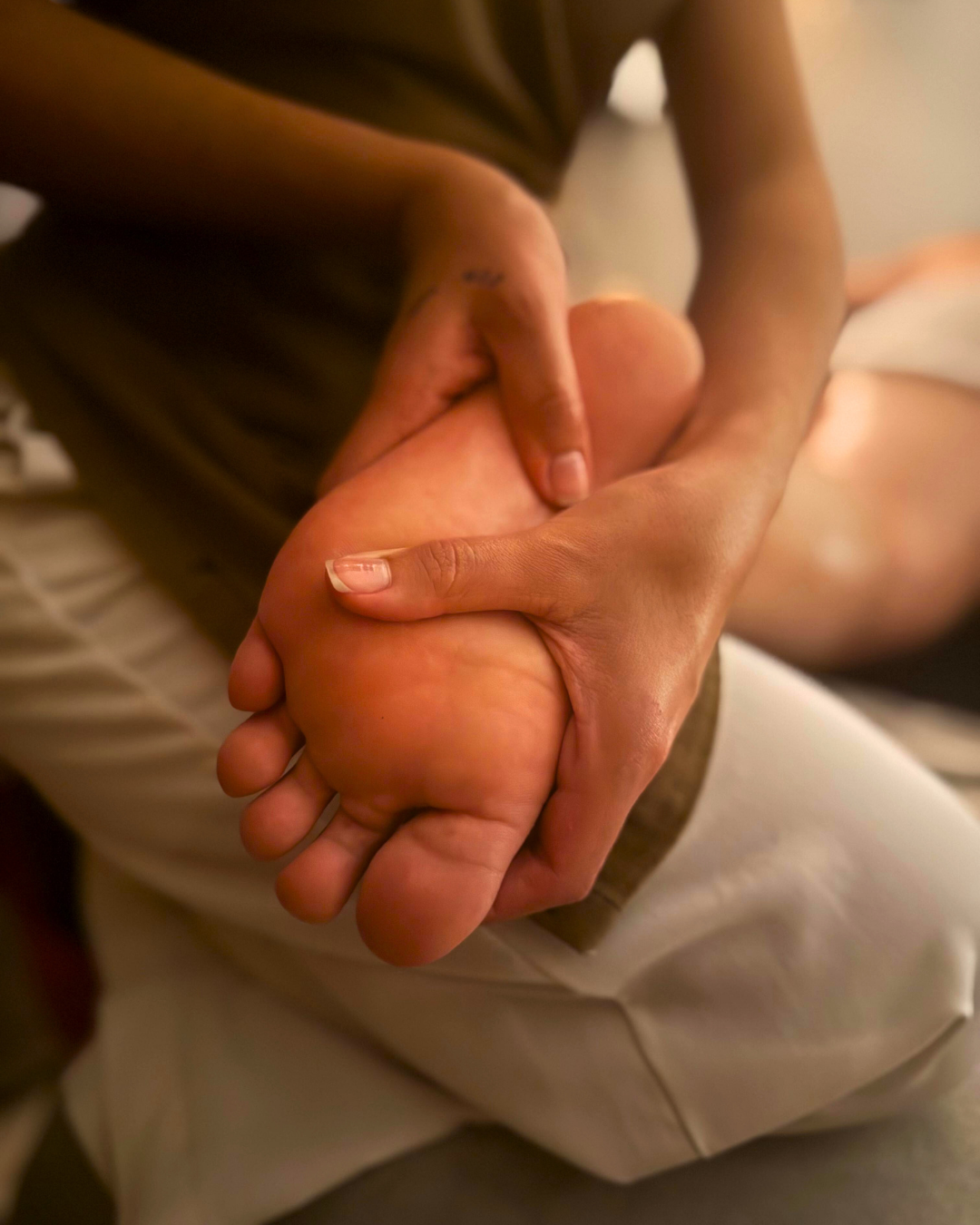 Uma abordagem terapêutica e sensorial voltada ao relaxamento profundo dos pés, realizada com movimentos suaves, lentos e contínuos.