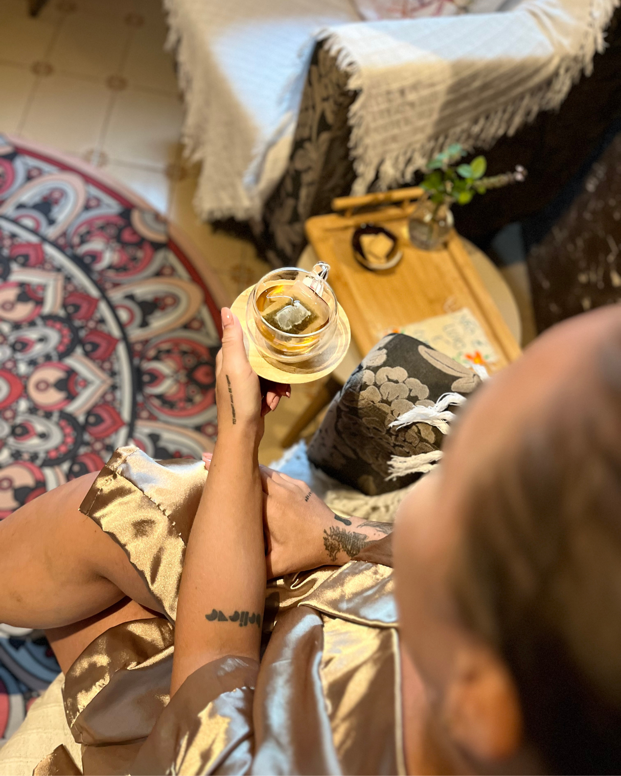 Um ritual feminino que convida ao recolhimento, ao cuidado e à reconexão com o próprio corpo. Uma experiência que nutre a pele, acalma a mente e desperta a sensação de ser profundamente acolhida.